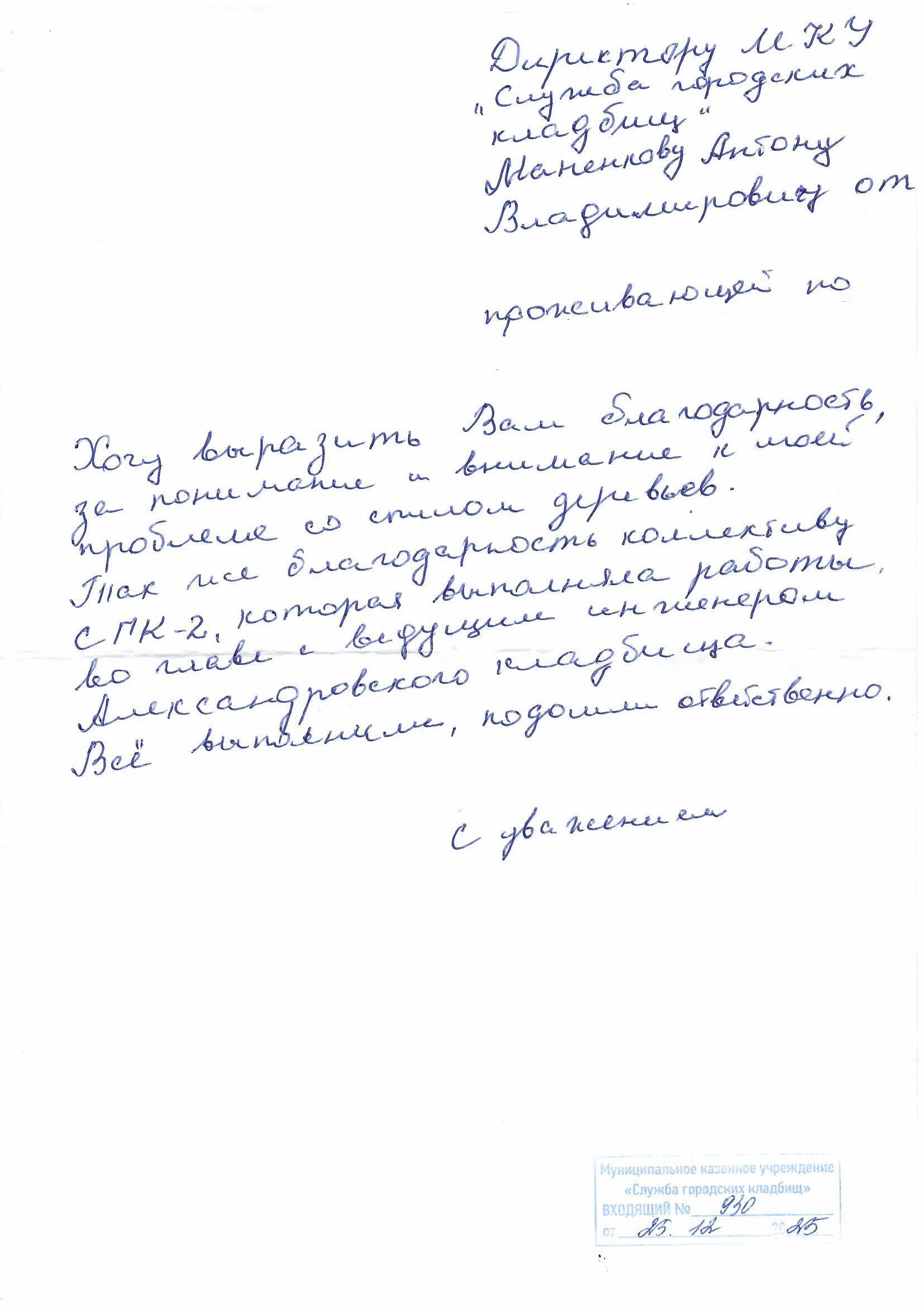 Отзыв о работе сотрудников МКУ «СГК», поступивший в адрес Учреждения